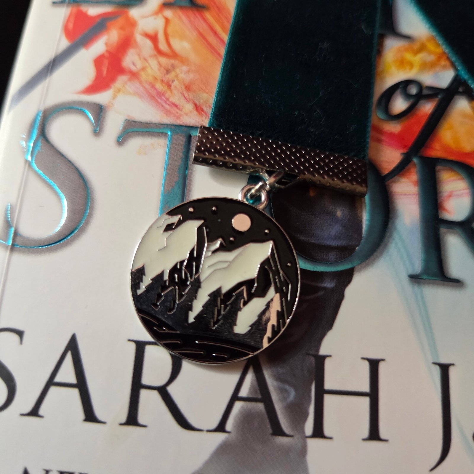 Handmade velvet ribbon bookmark with charms.