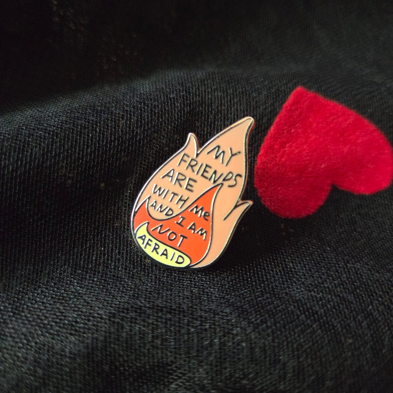 ‘My friends are with me and I am not alone’, enamel pin from Crescent City