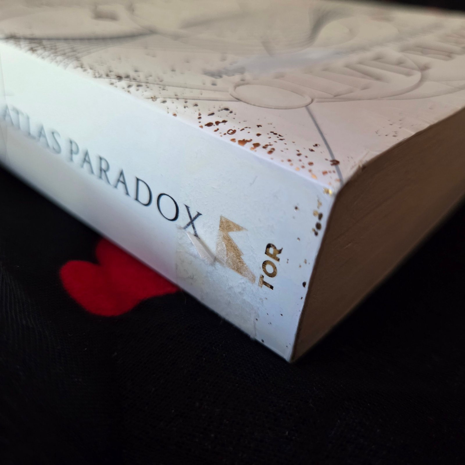 There is some sticker remnants on the spine and front cover.